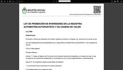 Salió publicada la Ley Nº 27.686 de Promoción de Inversiones en la Industria Automotriz-Autopartista y su cadena de Valor