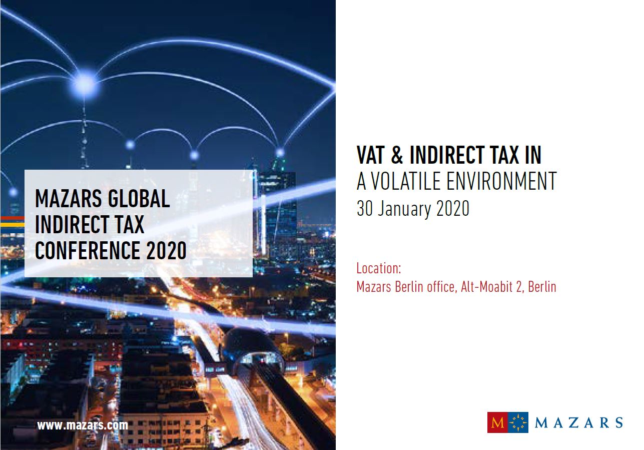 Mazars is pleased to be hosting the Mazars Global Indirect Tax Conference 2020: "VAT & Indirect Tax in a Volatile Environment".