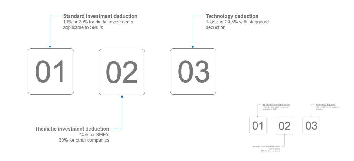 - Introduction of Technology Deduction offering a 13,50% deduction for qualifying R&D investments and patents