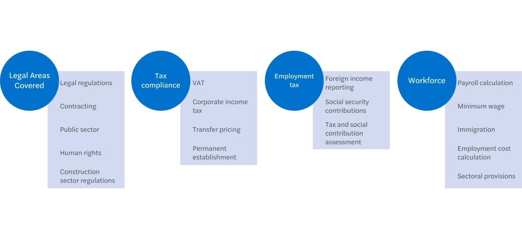 Navigating Belgium’s labor law, tax, immigration, social security and other regulations can be quite challenging for foreign contractors. That’s why we have set up a pragmatic and hands-on cooperation specifically designed to support Croatian subcontracting companies working on construction or industrial sites in Belgium. Our goal is to guide you through every step of the process and address all your questions. From compliance support in areas like personal income tax, corporate tax, VAT, labor law, social security and immigration, to advisory and compliance reviews, we ensure a smooth and compliant experience for you and your workforce both in Belgium and in Croatia.