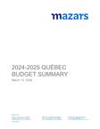 2024-2025 Québec Budget Summary