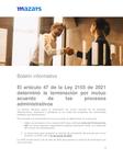 El artículo 47 de la Ley 2155 de 2021 consagra la terminación por mutuo acuerdo de los procesos administrativos