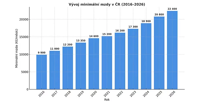 Odpovídající hodinová sazba při stanovené týdenní pracovní době 40 hodin bude činit 134,40 korun. Zvýšení vychází podle ministerstva práce a sociálních věcí z valorizačního mechanismu, který byl zakotven do zákoníku práce v roce 2024 a který zajišťuje, aby byl vývoj minimální mzdy předvídatelný a transparentní.