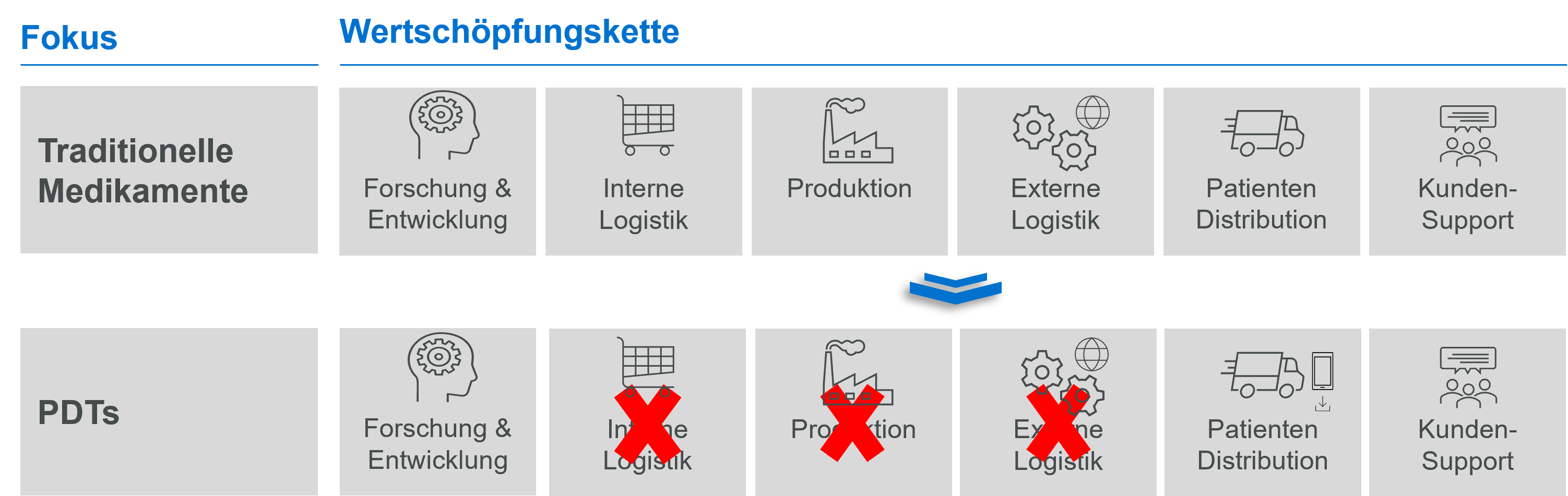 Wie wirkt sich die Entwicklung von PDTs auf die Wertschöpfungskette der traditionellen Arzneimittelhersteller aus?