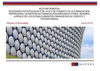Esta nueva ley incorpora, entre otras cuestiones, algunas novedades con el objetivo de favorecer la financiación bancaria de las pequeñas y medianas empresas (“pymes”), recoge el nuevo régimen jurídico de los establecimientos financieros de crédito e introduce en nuestro ordenamiento jurídico una regulación de la financiación participativa o más conocida como “crowdfunding”.