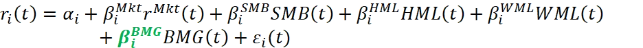 Once the BMG factor is constructed, it is integrated into a linear regression explaining yields by market factors, as in the MEDAF / CAPM[3]: