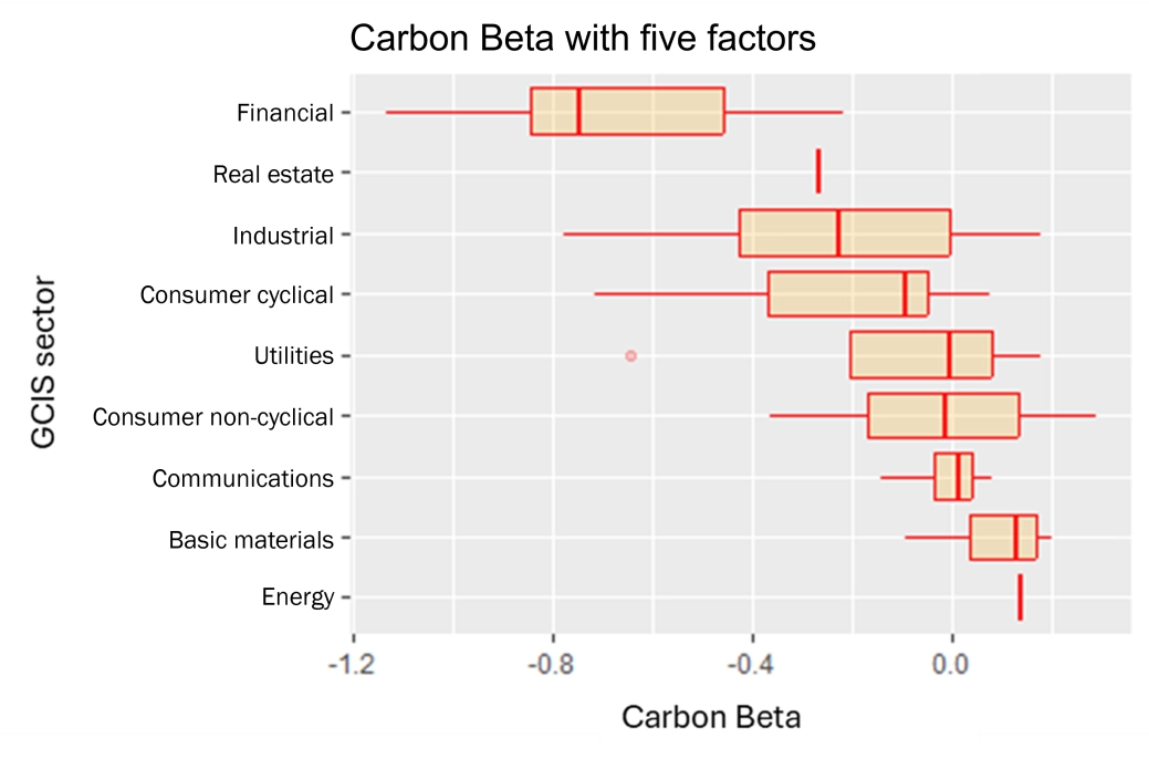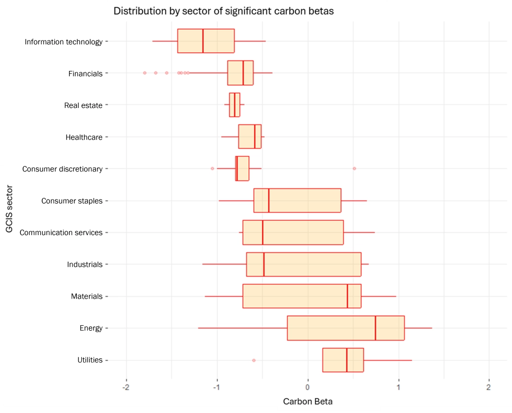 Distribution of carbon beta by sector within a test portfolio - source: Forvis Mazars study