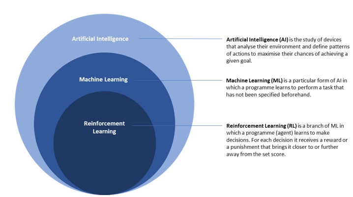 Reinforcement Learning (RL) is a branch of Machine Learning (ML) that is still little known to the general public. In this approach, an agent repeats actions and, depending on the result of these actions, receives a reward or punishment in the form of a score. Focussed on maximising the score, the agent adapts the next action (reinforcing what works, abandoning what fails) and thus achieves the programmed objective.