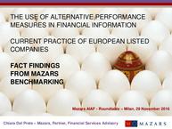 The results of Mazars’ study were the subject of discussion in a prestigious roundtable jointly organised by Mazars and AIAF (Association of Italian Financial Analysts) that took place in Milan on 29 November 2016. Panellists in the roundtable were international, European and national representatives of analyst organisations (EFFAS, AIAF), regulators (ESMA, Consob), standard-setters (IASB, EFRAG, OIC) and companies (BusinessEurope).