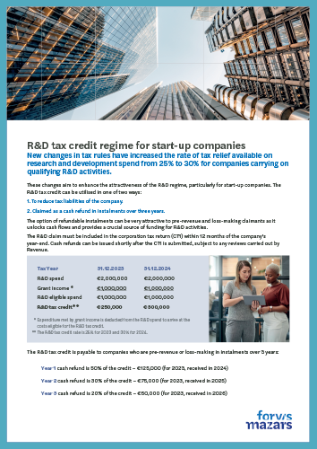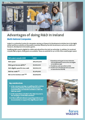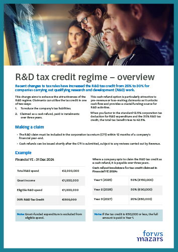 Our dedicated R&D tax team brings together scientific and financial expertise to guide businesses through every stage of the process – from assessing eligibility and compiling documentation to liaising with the Revenue Commissioners during audits and reviews.