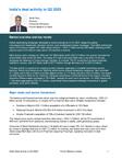India’s dealmaking witnessed a slowdown in Q2 2025, with M&A and PE/VC deals totalling ~USD 17 billion. While M&A values dipped sharply, private equity showed relative resilience, especially in banking, fintech, and infrastructure. Investor strategies shifted toward fundamentals and structured investments, signalling a cautious yet evolving market.