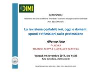 Alfonso Iorio, Partner Mazars Italia Audit & Assurance Services, presenterà il seminario: “La revisione contabile ieri, oggi e domani: spunti e riflessioni sulla professione” presso Ingegneria Gestionale, Università di Brescia, nell’ambito del corso di gestione aziendale, economia e organizzazione aziendale del prof. Marco Mutinelli.