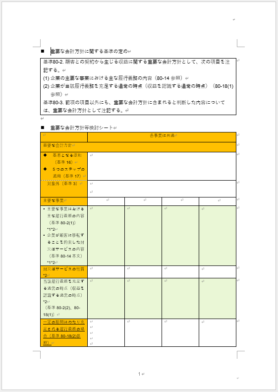 また、本連載で解説した、収益認識に関する期末注記を作成する際の留意点のうち、「開示目的」(基準80-4)に照らした開示のカギとなる重要な会計方針の記載上のエッセンスを添付「収益認識_重要な会計方針等検討シート_ひな型」としてまとめました。収益認識に関する期末注記を作成する際にご活用いただければ幸いです。