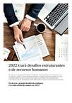 O grande desafio da auditoria e revisão oficial de contas em 2022 e nos próximos anos será atrair e reter o talento que permita dar o contributo que a sociedade espera dos auditores. Os auditores servem o interesse público e continuarão a ser um pilar fundamental na confiança não apenas do mercado de capitais mas de forma cada vez mais vasta, na forma como o tecido empresarial impacta a sociedade nas vertentes financeira, ambiental, social e de governo. Para tal é fundamental que os diversos intervenientes, tecido empresarial, universidades, auditores e reguladores unam esforços no sentido de valorizar o capital que melhor serve a profissão que é a Confiança.