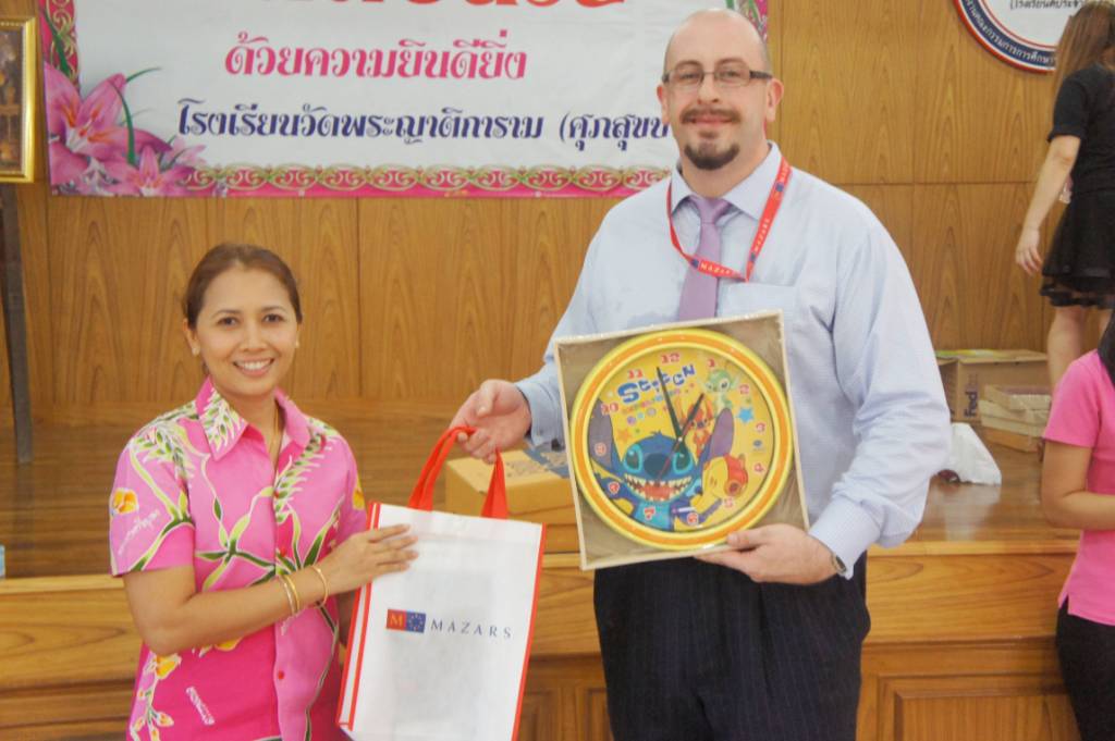 Mazars also distributed the “Alert Little Mole” books published by Save the Children, U.S. AID and the American Chamber of Commerce in Thailand (AMCHAM) along with a small box of crayons to more than 100 students. These books focus on disaster risk reduction education and had been developed by Accounting Director Jonathan Fryer, Co-Chair of the AMCHAM Community Engagement Committee. Jonathan working with AMCHAM and Save the Children prepared the book from initial concept through to publication. 6,000 books have been printed and distributed to Thai primary schools through Save the Children, AMCHAM member companies and the Ministry of Education.