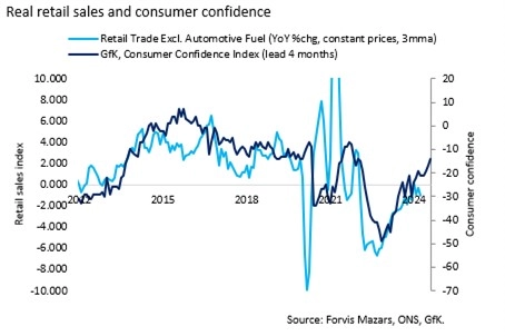 | September 2025 | Retail sales rose by 0.5% in August, following a 0.5% increase in July. We believe, however, that the recent upturn in household consumption is not set to last. Despite some improvements in household finances, due to rising real incomes, consumer confidence remains cautious. The labour market is cooling and many consumers are worried about the economic outlook, leading them to be more selective and tactical in their spending. |