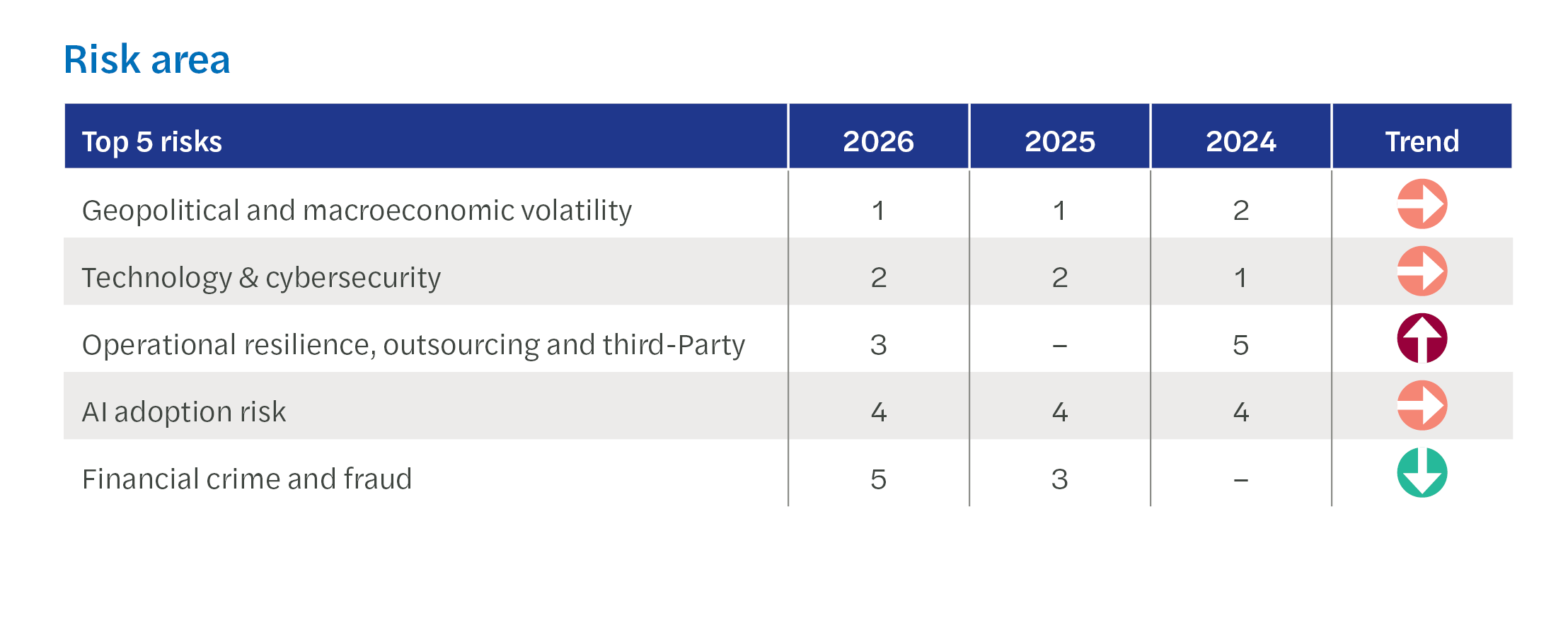 Election cycles: Political transitions in the US, India, and the EU are contributing to regulatory unpredictability and policy divergence, which is especially important in 2026 as firms face heightened uncertainty around AI, cyber, and resilience regulations due to shifting leadership priorities and potential changes in legislative agendas.