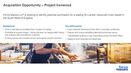 Forvis Mazars LLP is seeking to identify potential purchasers for a Sri Lankan restaurant chain based in the South-West of England