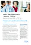 Forvis Mazars Financial Planning Limited is authorised and regulated by the Financial Conduct Authority, 12 Endeavour Square, London, E20 1JN. In the event that you are dissatisfied with a recommendation we have made you may be entitled to make a complaint. We have a complaints procedure that is available on request. If you wish to register a complaint please contact us: In writing: The Compliance Officer, Forvis Mazars Financial Planning Limited, 2 Chamberlain Square, Birmingham, B3 3AX By Phone: 0121 232 9500 By E-mail: FPCompliance@mazars.co.uk The Financial Ombudsman Service is available to sort out individual complaints that clients financial services businesses aren’t able to resolve themselves. To contact the Financial Ombudsman Service please visit www.financial-ombudsman.org.uk |