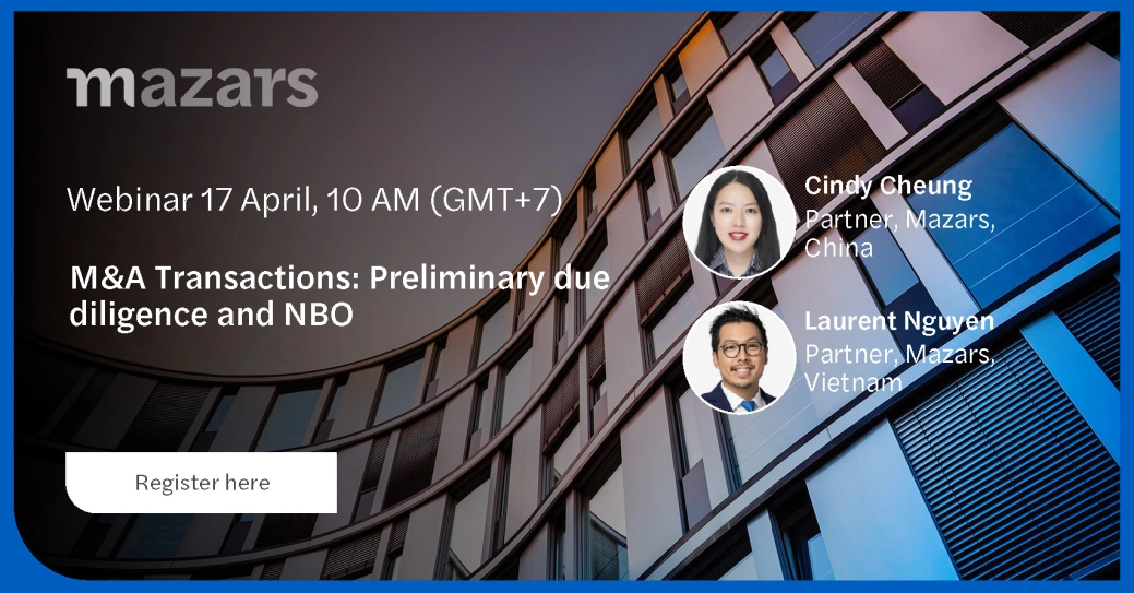 This webinar from the Financial Advisory Services team at Mazars will be presented by Cindy Cheung (mainland China) and Laurent Nguyen (Vietnam) who will share their experiences on international transactions
