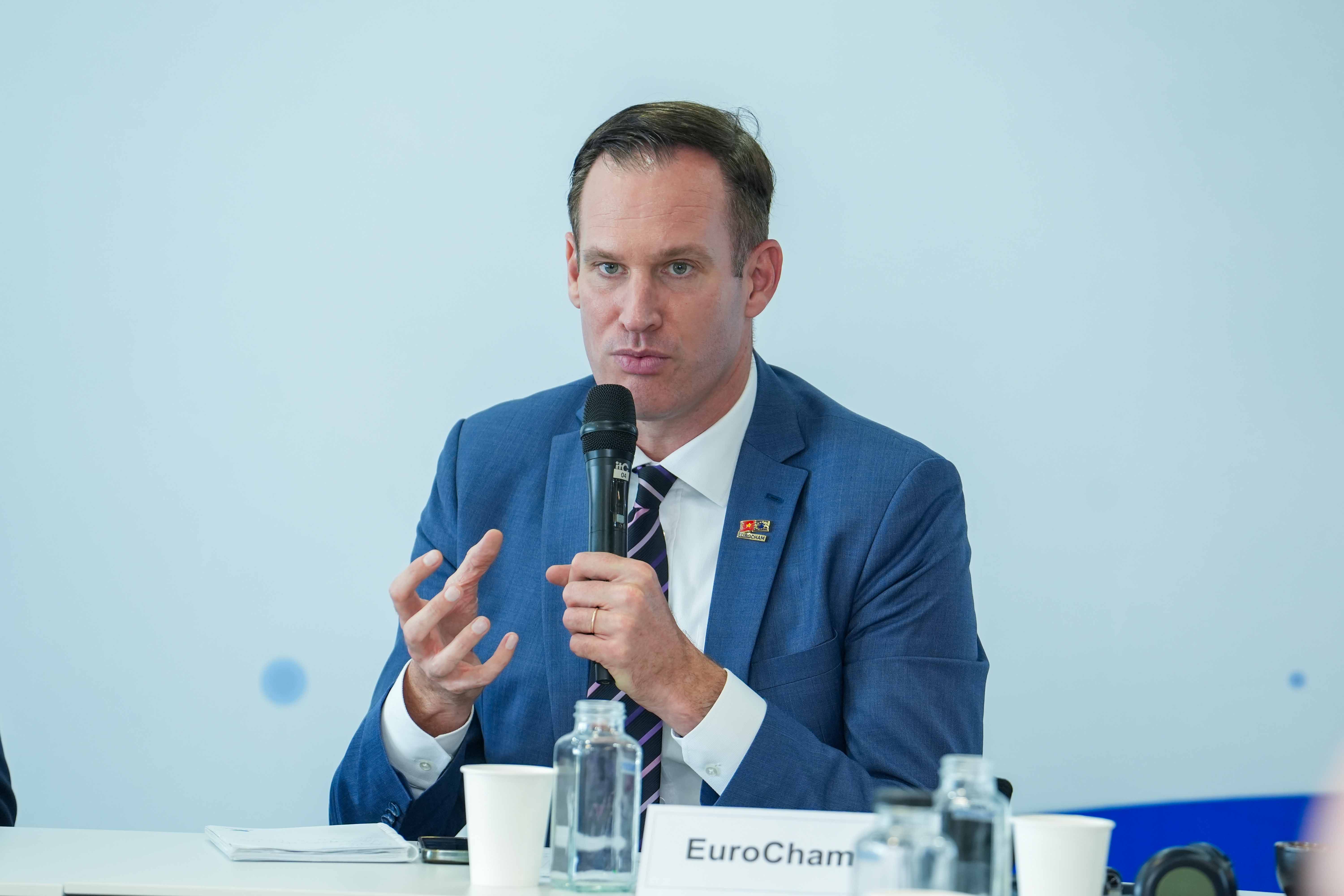 H.E. Giorgio Aliberti, the Ambassador of the European Union to Vietnam, alongside Gabor Fluit, Chairman of EuroCham, and European ambassadors, reiterated Team Europe’s commitment, as well as that of the business community, to support and collaborate with Vietnamese enterprises in adapting to the new regulatory framework.